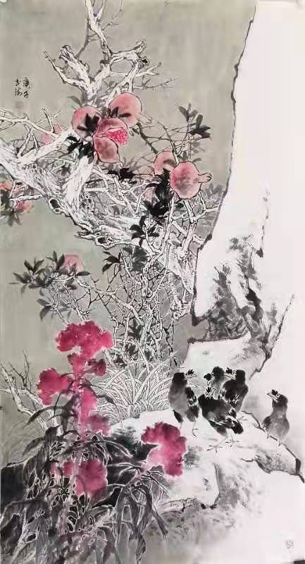 其作品追求气韵生动、形神兼备、笔苍墨韵、雅俗共赏,逐渐形成自己的审美志趣和绘画语言。